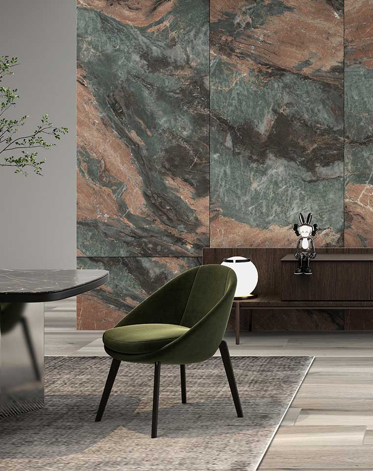 “中國(guó)式雅致生活”是中國(guó)人一直以來(lái)特有的生活哲學(xué)。隨著源源流淌的國(guó)風(fēng)美學(xué)與現(xiàn)代生活的簡(jiǎn)約新潮碰撞,中國(guó)式雅致生活內(nèi)涵得到進(jìn)一步深化,成為當(dāng)下及未來(lái)的主流家居趨勢(shì)。蒙娜麗莎以中國(guó)式雅致生活特有的“質(zhì)樸”、“精致”、“適度”、“雅正”、“簡(jiǎn)素”為基本的美學(xué)標(biāo)準(zhǔn),從中國(guó)文化傳統(tǒng)的原生色彩中汲取靈感,擷取傳統(tǒng)宮廷奢華飾品紋樣元素,創(chuàng)新推出800×2400×8.5mm國(guó)風(fēng)·簡(jiǎn)奢系列大板。