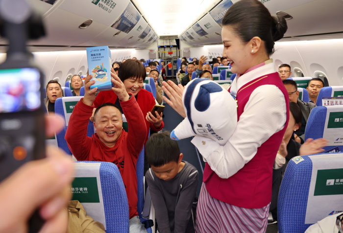 當(dāng)日,超過100位旅客參與到南航C919蒙娜麗莎主題航班四川成都航線首航日“云端”主題活動(dòng)當(dāng)中。