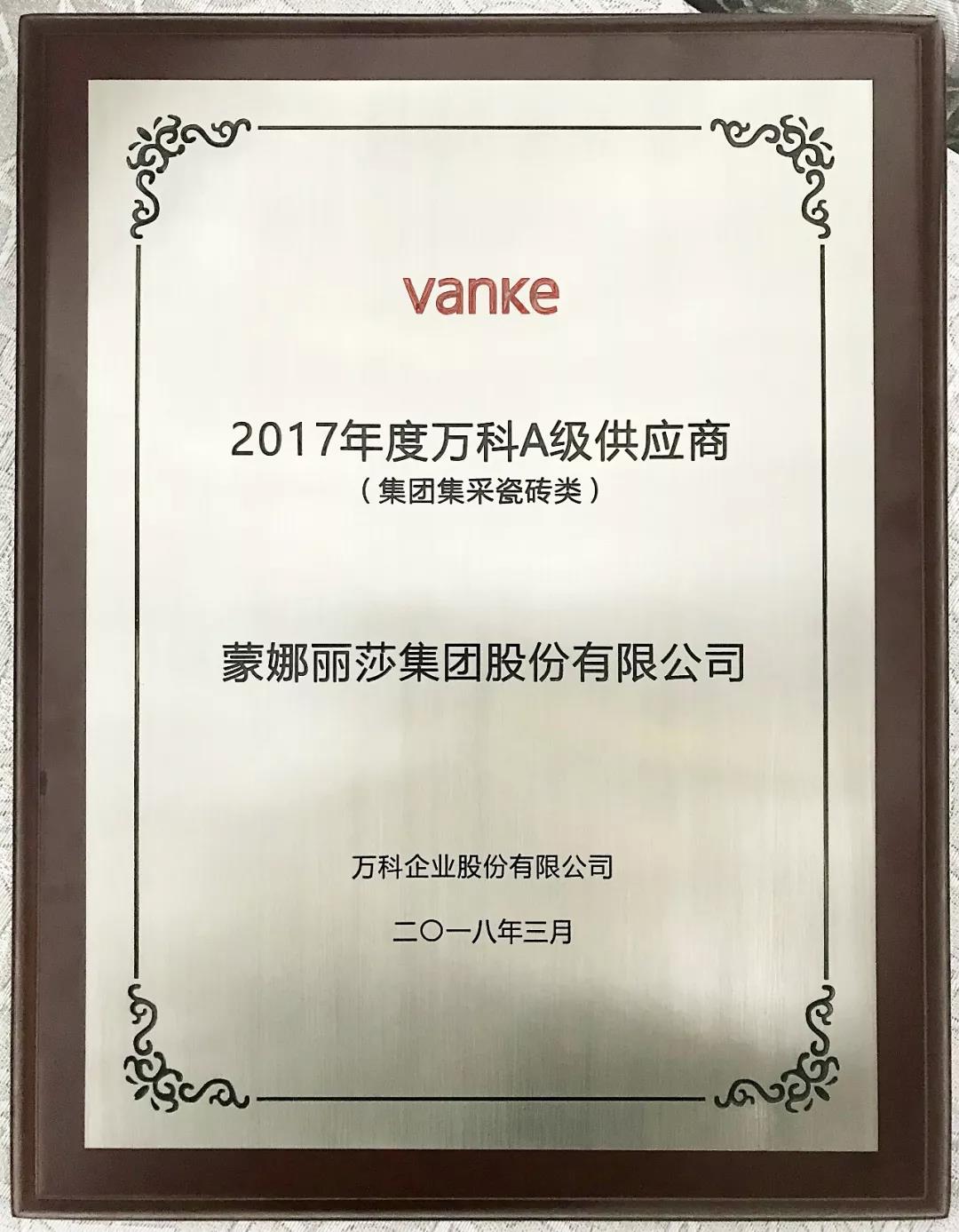 蒙娜麗莎獲“2017年度萬(wàn)科A級(jí)供應(yīng)商”稱(chēng)號(hào)