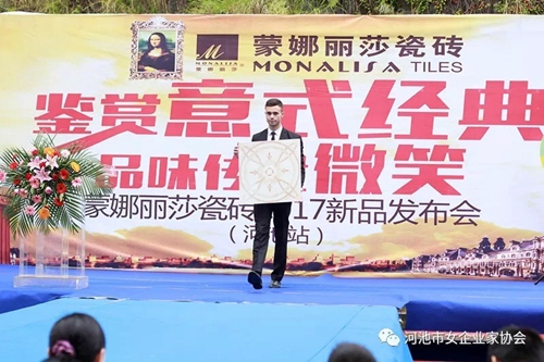 2017年11月11日上午,一場(chǎng)以“鑒賞意式經(jīng)典,品味傳奇微笑”為主題的蒙娜麗莎瓷磚2017新品發(fā)布會(huì)(河池站)在具有“小桂林”之稱的廣西金城江區(qū)華彩上演。應(yīng)邀出席發(fā)布會(huì)的嘉賓有當(dāng)?shù)厣虝?huì)會(huì)長(zhǎng)、河池市室內(nèi)裝飾行業(yè)協(xié)會(huì)領(lǐng)導(dǎo)、河池市女企業(yè)家協(xié)會(huì)領(lǐng)導(dǎo)、河池廣大業(yè)主、優(yōu)秀設(shè)計(jì)師等,當(dāng)日高朋滿座,歡聚一堂。而更讓滿堂生輝的是蒙娜麗莎2017新品瓷磚系列,讓在場(chǎng)嘉賓飽享了一場(chǎng)新穎雅致的瓷磚展示視覺藝術(shù)盛宴。
