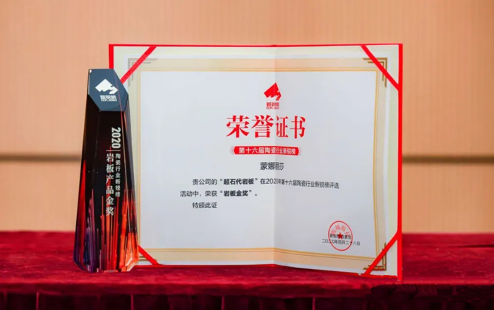 4月28日下午,2020中國陶瓷創(chuàng)新力高峰論壇暨第16屆新銳榜頒獎(jiǎng)盛典在佛山市新媒體產(chǎn)業(yè)園隆重舉行。蒙娜麗莎集團(tuán)憑借獨(dú)具一格的品牌形象和創(chuàng)新產(chǎn)品,以超石代巖板榮獲“年度巖板金獎(jiǎng)”和以羅馬崗石系列榮獲“年度工程用戶喜愛產(chǎn)品”兩項(xiàng)重量級(jí)大獎(jiǎng)。