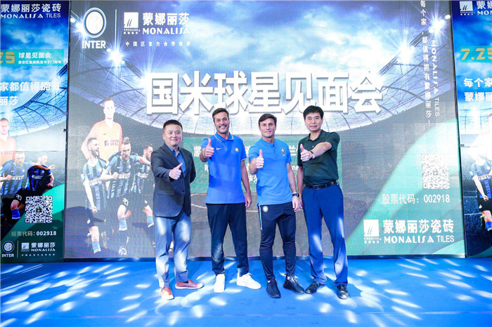 7月24日,南京奧體中心上演意大利國家德比大戰(zhàn),國際米蘭與尤文圖斯兩大足球俱樂部激烈對決。作為國際米蘭中國區(qū)官方合作伙伴的蒙娜麗莎用實際行動對藍黑軍團進行有力聲援,并于25日下午在南京紅星美凱龍卡子門商場舉行國際米蘭傳奇球星見面會,邀請國際米蘭傳奇球星薩內(nèi)蒂和塞薩爾親臨現(xiàn)場與廣大球迷互動。