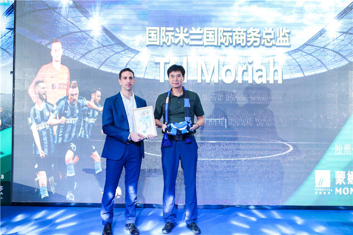 ▲蒙娜麗莎集團董事、副總裁鄧啟棠與國際米蘭國際商務(wù)總監(jiān)Tal Moriah交換禮物