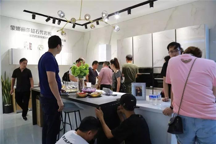 在2019年7月8日-11日的廣州建博會(huì)上,蒙娜麗莎超300㎡的定制館成為建博會(huì)上備受關(guān)注的亮點(diǎn)。陶瓷大板、超石代巖板、集成墻板這三大新型材料在家居領(lǐng)域的應(yīng)用讓參觀(guān)者大開(kāi)腦洞。館內(nèi)涵蓋客廳體驗(yàn)區(qū)、廚房體驗(yàn)區(qū)、臥室體驗(yàn)區(qū)、休息區(qū)、產(chǎn)品區(qū)的全屋空間整裝展示,向消費(fèi)者傳遞蒙娜麗莎超石代巖板代表的不僅僅是一種材料,更是一種全空間定制生活方式,一種屬于未來(lái)家居的生活體驗(yàn)。