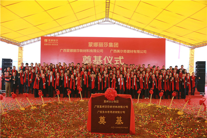 3月27日,蒙娜麗莎集團(tuán)旗下廣西蒙娜麗莎新材料有限公司與廣西美爾奇建材有限公司在廣西藤縣中和陶瓷產(chǎn)業(yè)園區(qū)隆重舉行奠基儀式。
