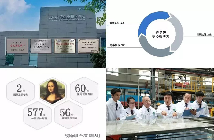 蒙娜麗莎集團(tuán)建有四大省級以上的科技創(chuàng)新平臺,成功申請國家及國際專利累積超過695項,推動企業(yè)在行業(yè)革新中屢屢領(lǐng)先;與眾多高校、研究院、外企建立產(chǎn)學(xué)研合作,在戰(zhàn)略發(fā)展、專家智庫、陶瓷材料研發(fā)等方面進(jìn)行深入交流;并致力于培養(yǎng)優(yōu)秀科研人才,有效推動陶瓷行業(yè)相關(guān)核心技術(shù)的解決,成為企業(yè)產(chǎn)品創(chuàng)新、生產(chǎn)創(chuàng)新的不竭動力。