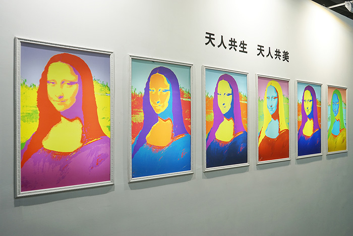 波普風(fēng)格藝術(shù)是本次展位的另一亮點(diǎn)。在一片顏色柔和的自然生態(tài)環(huán)境中,幾幅鮮艷亮眼的波普瓷藝畫映入眼簾,讓整個展位的風(fēng)格多了幾分戲劇性的沖突。6種前衛(wèi)大膽的用色與經(jīng)典名畫產(chǎn)生了奇妙的化學(xué)反應(yīng),讓現(xiàn)場觀眾切身體會到陶瓷與藝術(shù)結(jié)合帶來的震撼。