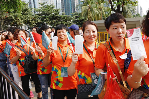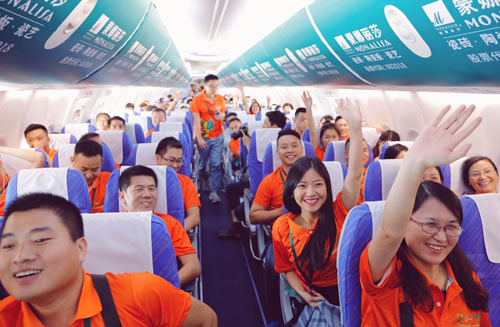 消費(fèi)者們快樂搭乘“蒙娜麗莎亞運(yùn)助威主題航班”