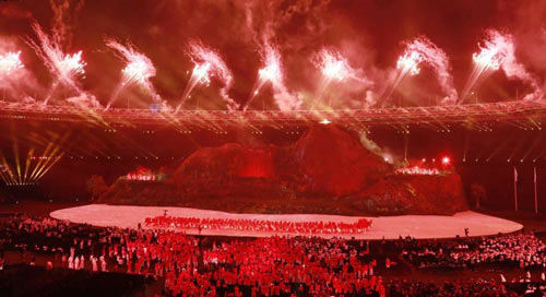 當(dāng)晚,在全場(chǎng)觀眾的注視下,印尼著名運(yùn)動(dòng)員依次傳遞火炬,從舞臺(tái)一路走上高山,當(dāng)印尼羽毛球名將王蓮香最后接過火炬,在舞臺(tái)的火山之上,圣火點(diǎn)燃宛如火山噴發(fā),現(xiàn)場(chǎng)一片沸騰,點(diǎn)燃全場(chǎng)最高歡呼聲。
