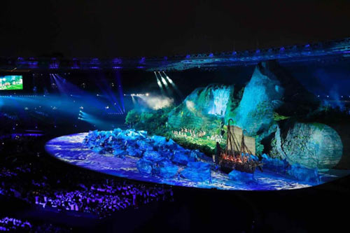 現(xiàn)場(chǎng)儀式過后,一場(chǎng)別開生面的文藝演出隨即而來。印度尼西亞的著名音樂家、藝術(shù)家協(xié)同多名舞蹈演員登臺(tái)演出,用史詩(shī)般的恢弘表演糅合印尼傳統(tǒng)民族風(fēng)情,為國(guó)際旅客壓軸獻(xiàn)上本屆開幕式的最后一輪高潮。在馬舞的歡快節(jié)奏中,開幕式帶著亞洲人民對(duì)和平、友誼與繁榮的美好祝愿而結(jié)束。