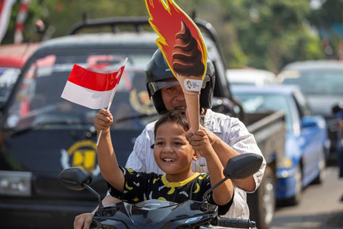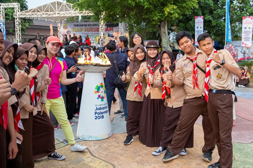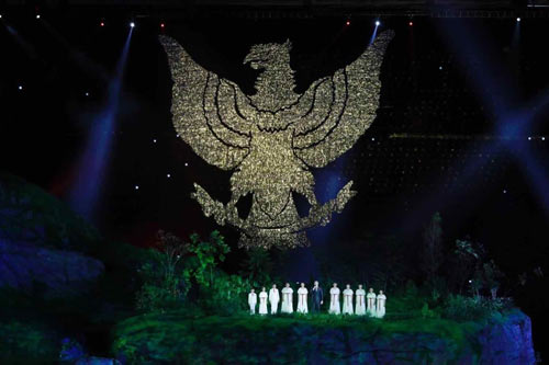 當(dāng)?shù)貢r(shí)間21時(shí)20分,印尼總統(tǒng)佐科·維多多宣布第十八屆亞運(yùn)會(huì)開幕。開幕式的高潮出現(xiàn)在主火炬點(diǎn)燃時(shí)。本屆亞運(yùn)會(huì)圣火采集自首屆亞運(yùn)會(huì)舉辦地印度新德里國(guó)家體育場(chǎng),圣火傳遞第一站從日惹市到爪哇島另一個(gè)主要城市梭羅市,隨后在印尼境內(nèi)53個(gè)城市傳遞。