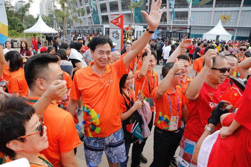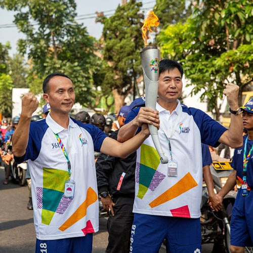 蒙娜麗莎集團(tuán)總裁蕭禮標(biāo)、副總裁鄧啟棠傳遞亞運(yùn)圣火