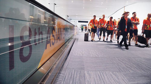 8月17日,蒙娜麗莎員工代表及獲獎(jiǎng)消費(fèi)者旅客集結(jié)廣州白云機(jī)場(chǎng),在簡(jiǎn)短的開機(jī)儀式過后,搭乘“蒙娜麗莎亞運(yùn)助威主題航班”,歷時(shí)飛行4個(gè)半小時(shí)成功抵達(dá)印尼雅加達(dá)。