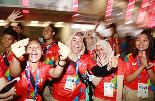 印尼體育代表團(tuán)進(jìn)場(chǎng)引起最長(zhǎng)歡呼聲