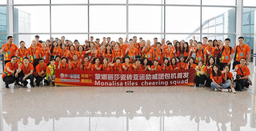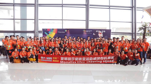 2018年8月17日,蒙娜麗莎集團(tuán)帶領(lǐng)由消費(fèi)者顧客、企業(yè)員工代表組成的百人“亞運(yùn)助威團(tuán)”,在廣州白云機(jī)場(chǎng)包機(jī)出發(fā)印尼雅加達(dá),觀看第18屆亞運(yùn)會(huì)開幕式,為中國(guó)健兒加油助威。