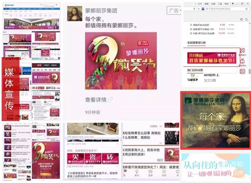 2017年,以“第九屆蒙娜麗莎微笑節(jié)”活動(dòng)為契機(jī),蒙娜麗莎瓷磚線下全國近3000家專賣店統(tǒng)一方案、統(tǒng)一落地執(zhí)行,拉動(dòng)銷售。