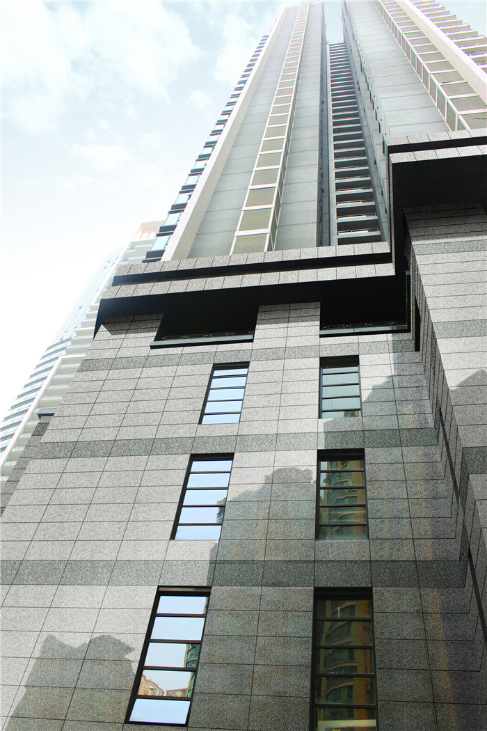 銀花崗,黑白灰中加上黃調(diào)調(diào)和,顆粒狀的紋理不規(guī)格散布,凹凸的質(zhì)感為簡約的色調(diào)平添了一份層次感,營造了自然粗獷的感覺。