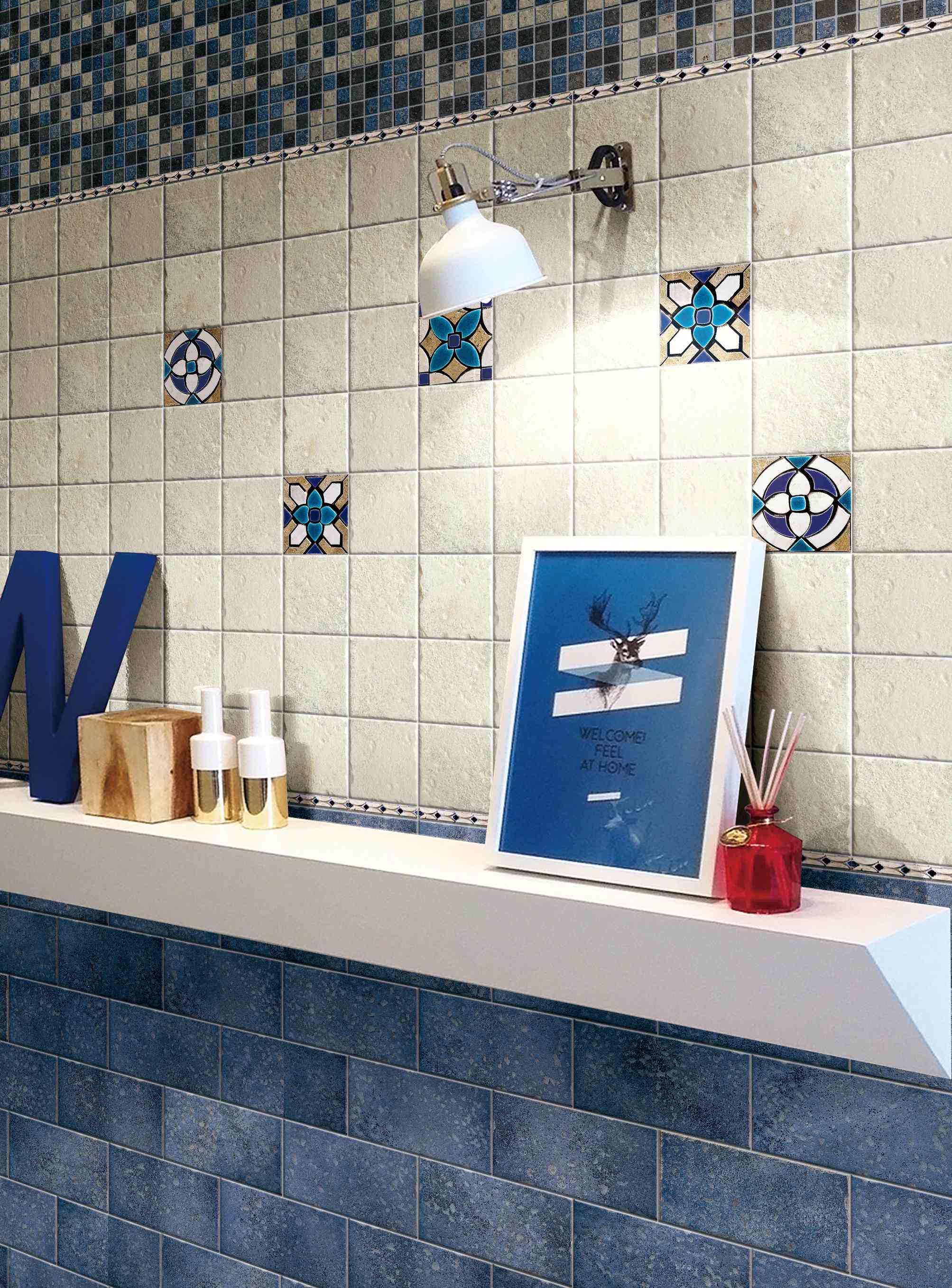 產(chǎn)品選用意大利優(yōu)質(zhì)原料和釉料,彰顯復(fù)古之風(fēng), 奪目的色澤更是經(jīng)歷重重仿古工藝的歷練方能盡情展示;手工模具雕琢的起伏變化伴隨著磚面云彩暈染的色彩過(guò)渡, 在紋理與顏色巧妙融合的同時(shí)仿佛瞬間轉(zhuǎn)換了時(shí)空, 將地中海的休閑生活躍然于磚面之上。