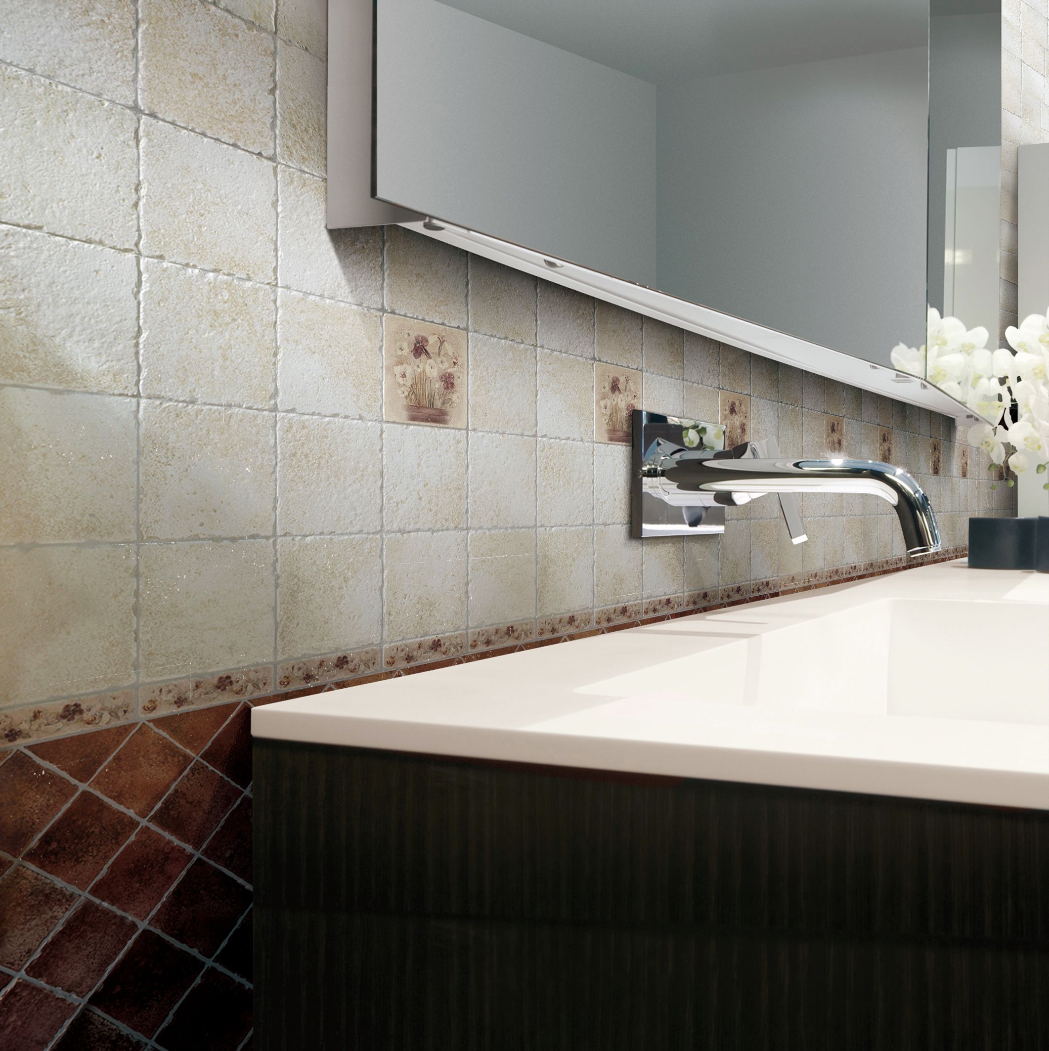 產(chǎn)品選用意大利優(yōu)質(zhì)原料和釉料,彰顯復(fù)古之風(fēng), 奪目的色澤更是經(jīng)歷重重仿古工藝的歷練方能盡情展示;手工模具雕琢的起伏變化伴隨著磚面云彩暈染的色彩過渡, 在紋理與顏色巧妙融合的同時仿佛瞬間轉(zhuǎn)換了時空, 將地中海的休閑生活躍然于磚面之上。