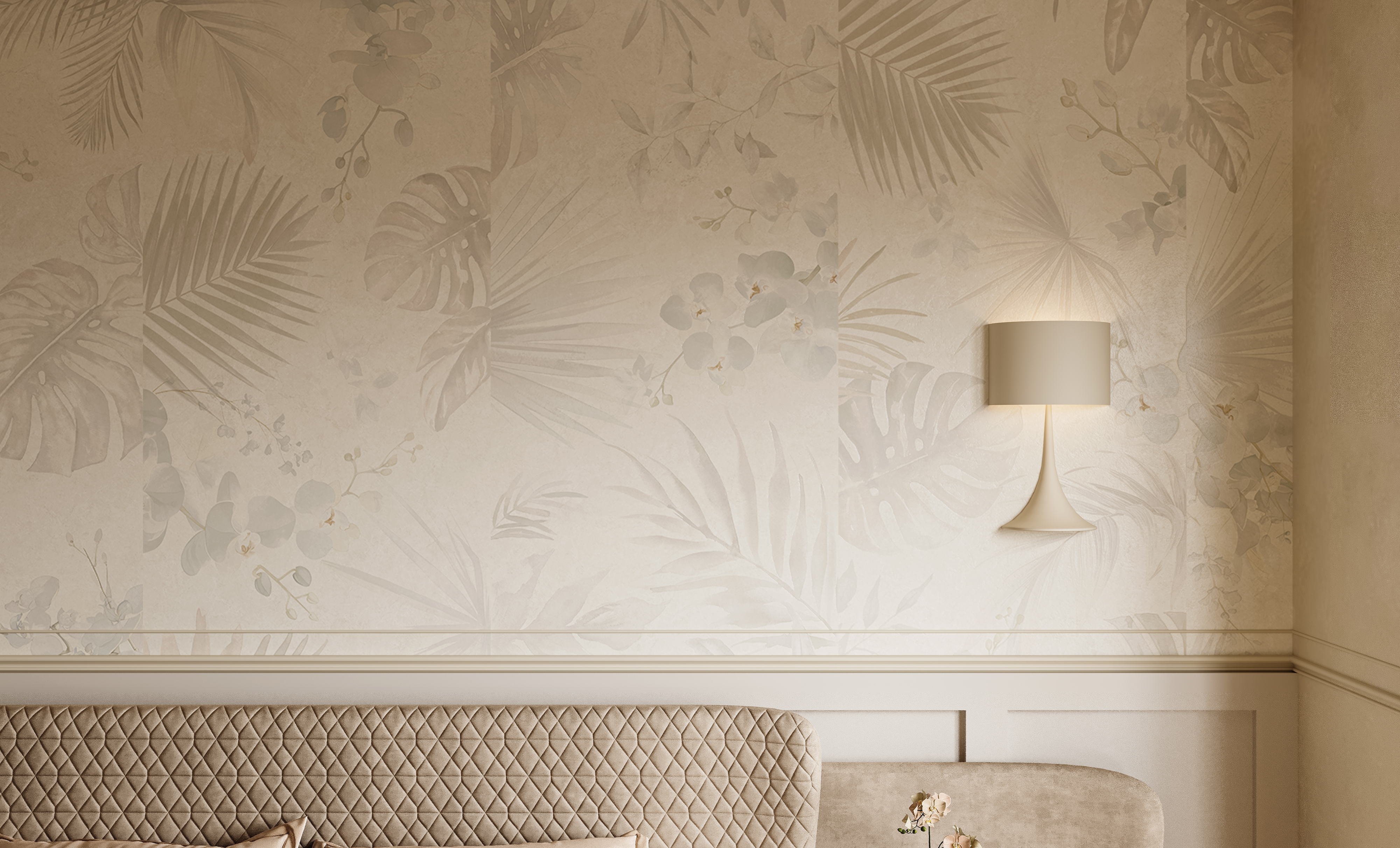 春華灼灼,秋實(shí)累累。以淺米色為底,勾勒草木、鮮花生長(zhǎng)的痕跡,將自然的豐饒與寧?kù)o鋪陳于空間。葉片舒展,光影斑駁,仿佛春風(fēng)拂過(guò),綠意盎然,遙待著秋日碩果累累。用自然筆觸,鐫刻時(shí)光之美,講述生命的輪回與詩(shī)意。讓家,住進(jìn)四季里。