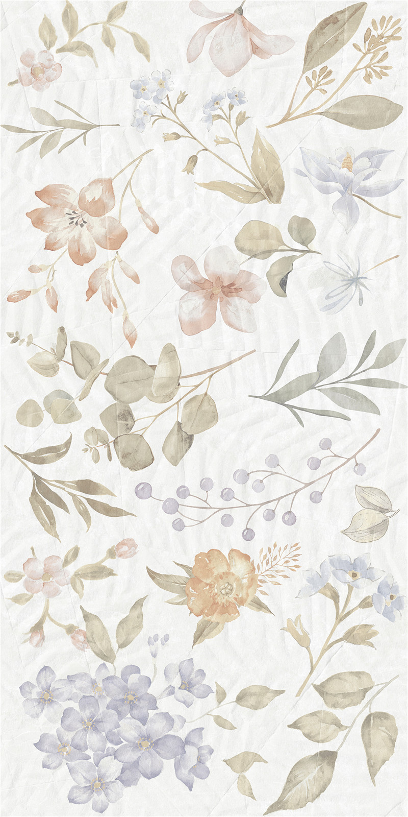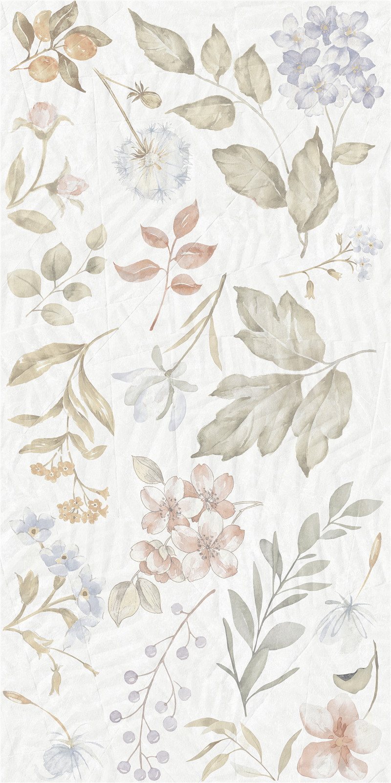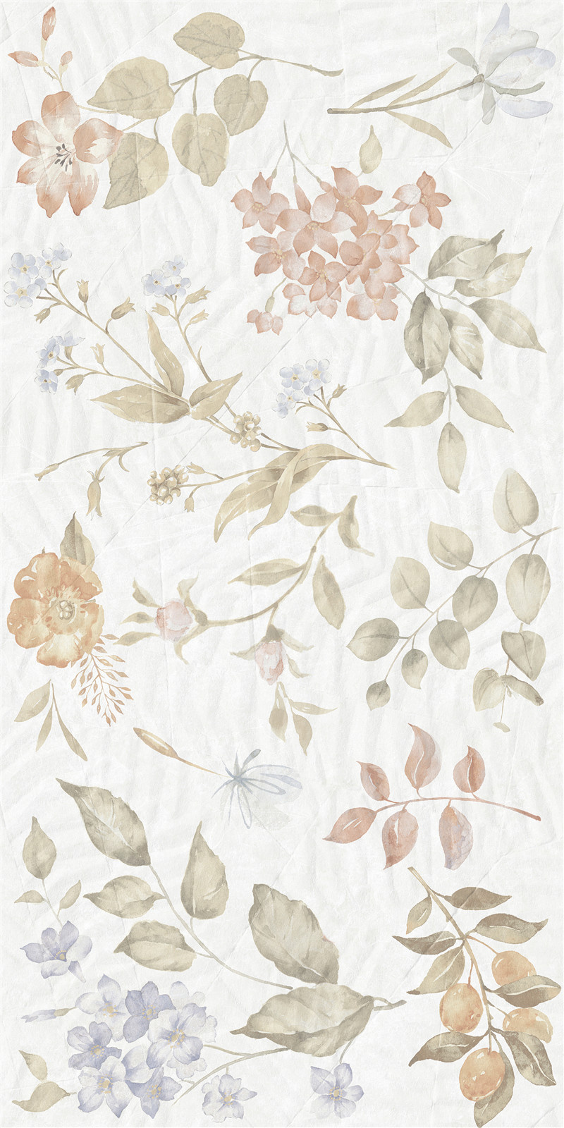 柔色花卉與葉蔓交織,淺調(diào)暈染詩意。磚面如繪夢(mèng)幻園藝,花影婆娑,葉韻悠然,為空間鋪展靜謐浪漫的夢(mèng)境,盡顯自然雅致的柔情絮語。