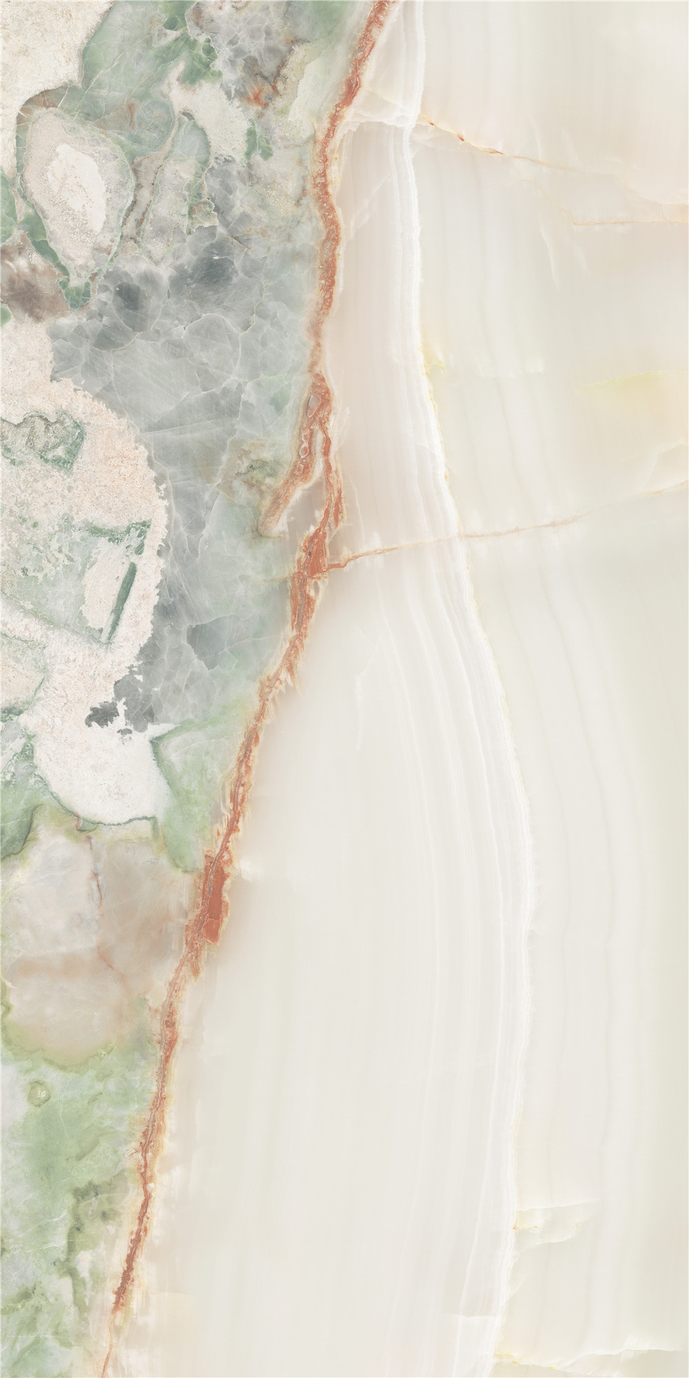靈感源自珍稀名玉“青花玉”,墨色如煙絮游走于脂白肌理之中。設計捕捉其水墨潑灑般的自然逸趣,磚面紋理由深至淺過渡,還原玉石溫潤通透的質感,為空間注入沉靜典雅、清逸靈動的東方氣韻。
