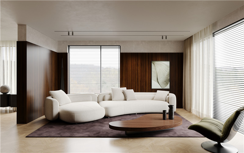 木紋藏時(shí)光,布紋蘊(yùn)溫潤,木紋的自然肌理與布紋的細(xì)膩質(zhì)感,巧妙融合其紋理呈優(yōu)雅縱向排布,色澤醇厚溫潤,既保留了實(shí)木的天然韻味,又因布紋質(zhì)感的加持,增添了一份柔和雅致的觸覺聯(lián)想。