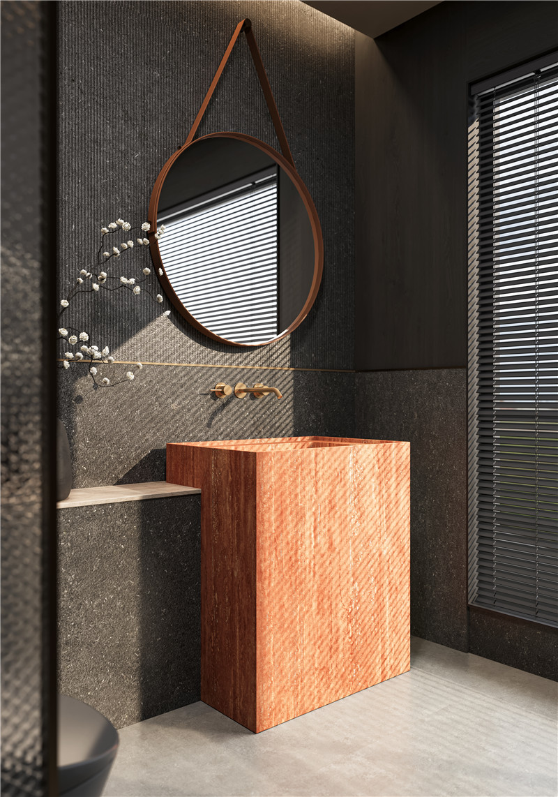 萃取巖石的原生粗糲,糅合水泥的凝練肌理,石質(zhì)的粗糲顆粒藏于細(xì)膩感之中,自然形成的肌理紋路如經(jīng)時(shí)光打磨,石質(zhì)的天然顆粒感與水泥凝結(jié)后的細(xì)膩紋路交織,每一寸表面都帶著自然形成的肌理層次