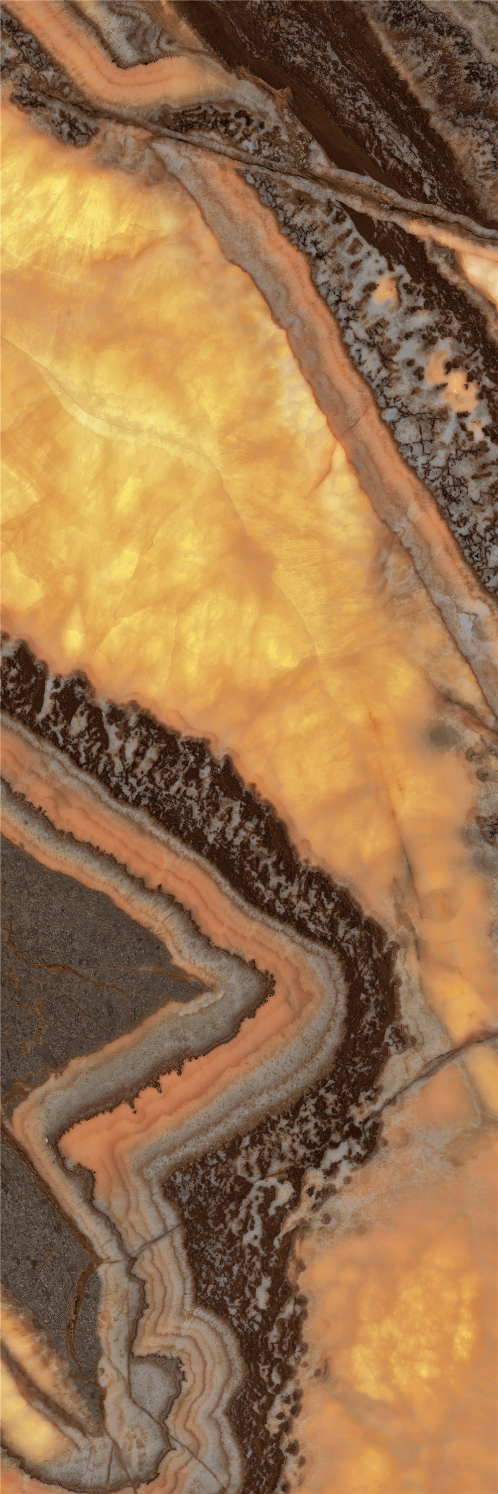 靈感源于半透的天然瑪瑙玉,呈現(xiàn)出如晨光浸染的琥珀質(zhì)感。紋理似石髓流動(dòng),在光照下泛起溫潤(rùn)的暈彩,既有礦物的通透靈性,又凝練為現(xiàn)代空間的詩(shī)意光幕,讓墻面仿佛被封存了一整片熹微的黎明