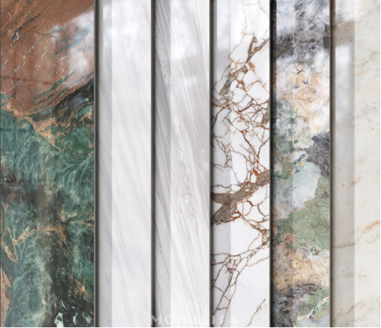 東方白,是極光掠過(guò)冰川,流光刻下一段浪漫的雪地詩(shī)行;藍(lán)金沙,是星河墜入深藍(lán)的沙漏,凝固的辰星閃爍著神秘而優(yōu)雅的光芒;里約白,將熱帶晨光融成琥珀,在石紋里封印不熄的盛夏;寶格麗,當(dāng)BVLGARI經(jīng)典紋理烙入巖層基因,奢石便擁有了高定珠寶的傲慢;菲尼克斯,在云母與石英的時(shí)空褶皺中,灑落一片古老而神秘的光輝;綠碧璽晶,灰色熔巖伏著翡翠礦脈的秘色,在巖層褶皺里續(xù)寫未央的星塵詩(shī)篇;霽紅疊翠,粗獷的赤紅大地上翠色涌動(dòng),交織出山河的熱烈與生機(jī);范思哲黑,在玄武巖的褶皺里暗涌星塵密碼,訴說(shuō)著遠(yuǎn)古的神話與未來(lái)的幻想。每一款七星珍巖,是藝術(shù)與自然的完美融合,它們講述著關(guān)于光與影、時(shí)間與空間的故事,引領(lǐng)著人們走向一個(gè)更加高階、更加隱奢的生活境界。